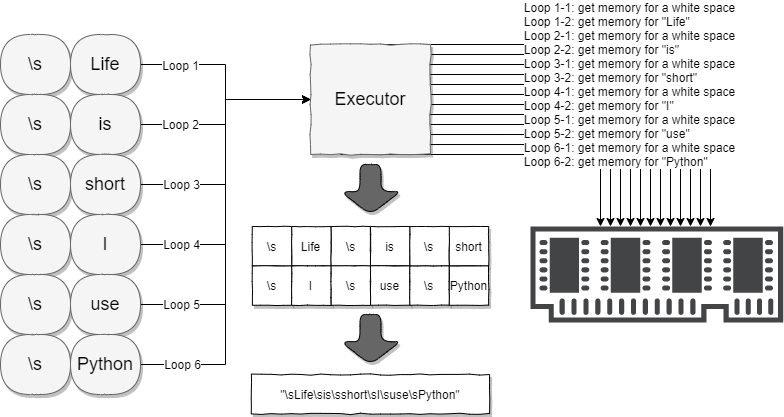 upshot += ' ' + sand apply for memory address for the white space' '. - Then, the executor realise that the white infinite needs to be joined with a cord, and then it will employ for retentivity address for the string