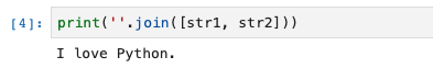 The operation shown higher up is based on 100k trials so that the results are very confident and obvious. Using thejoin() method can be 4 times faster than using + to bring together the strings in the list.
